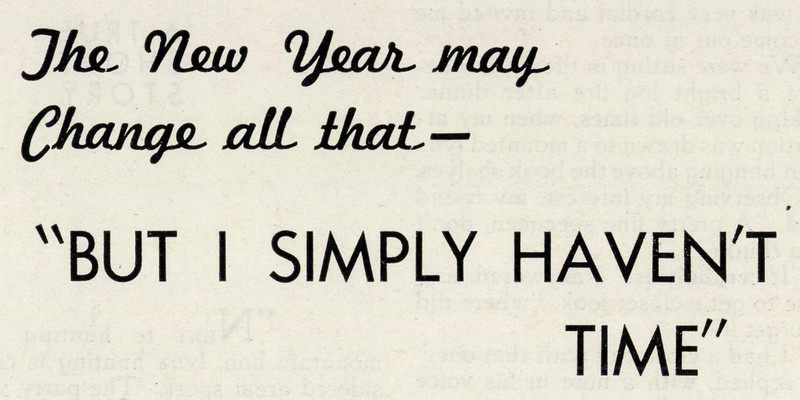 "The new year may change all that — 'but I simply haven't time.'" From Improvement Era, 1942.