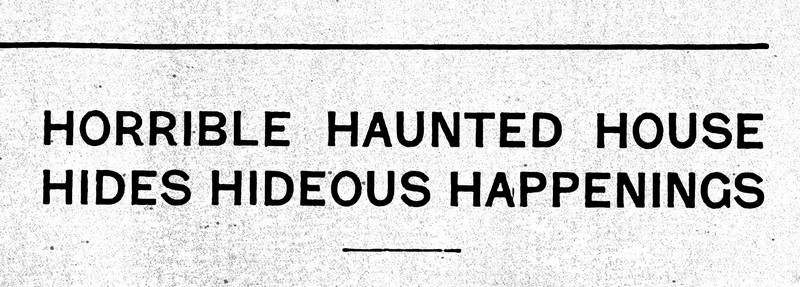 "Horrible haunted house hides hideous happenings." From Toike Oike, 1930.