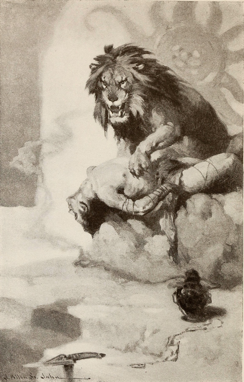 "I don't know who will stop me from eating this fellow when I am hungry." From The Duluth Herald, 1920.