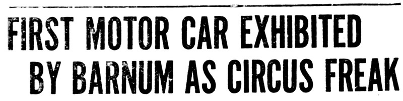 So the first "car show" was put on by P. T. Barnun in 1896, the auto being exhibited as a circus freak. From The Duluth Herald, 1920.