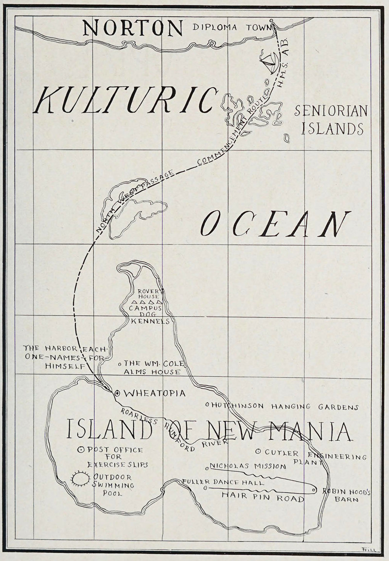 "The harbor each-one-names-for-himself," on the Island of New Mania. From Wheaton College's 1923 yearbook.