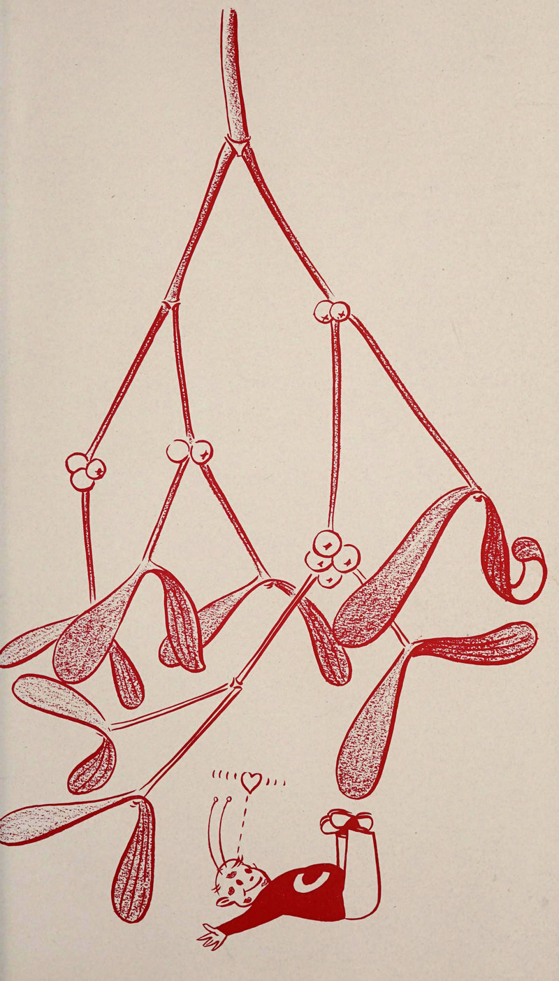 The devil takes what he wants before Santa goes down the chimney. From Current Sauce, 1960.