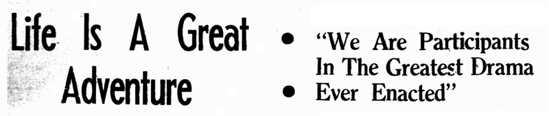 "Life is a great adventure. We are participants in the greatest drama ever enacted." From the Bombay Sunday Chronicle, 1942.