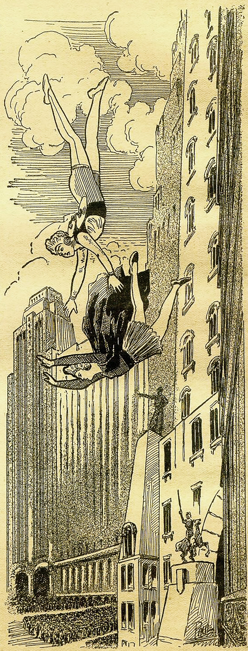 "Help from nowhere. The answered prayers." From The Children's Newspaper, 1929.