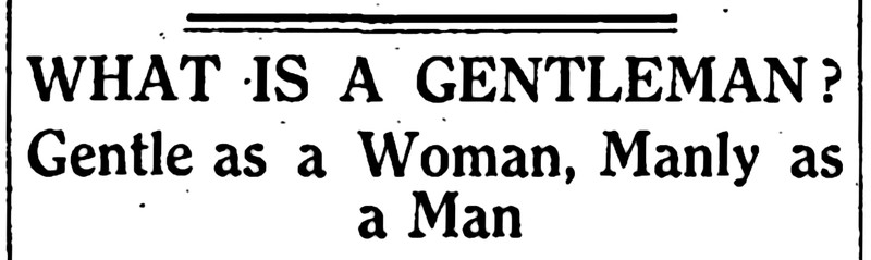 "What is a gentleman? Gentle as a woman, manly as a man." From The Children's Newspaper, 1922.