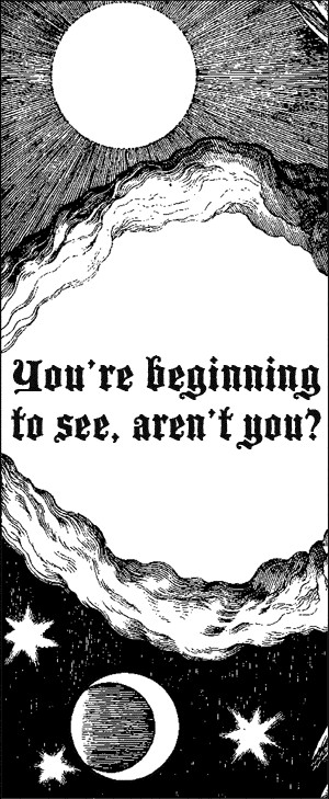 Answer: Angelic. "And the angel whispered thus . . . 'Arise, and be with us.'” —Samuel Kennedy Cowan, "My Choice,” The Murmur of the Shells, 1879, p. 45. (The answer is in black text on the black background. Highlight it to view.)