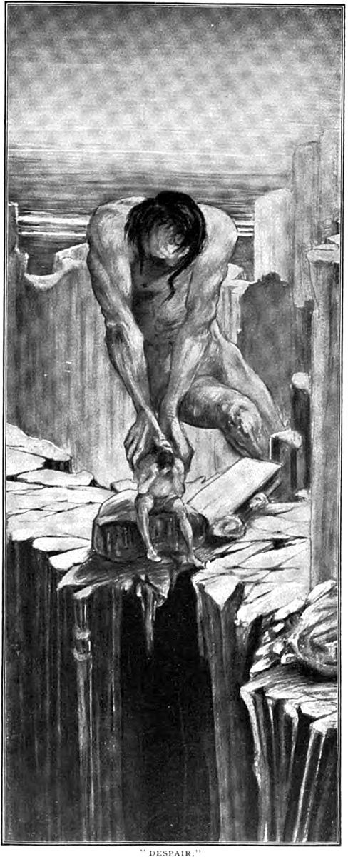 Staring into the depths: an illustration from an 1896 issue of Cosmopolitan magazine. The caption reads: "So deep the dark abyss, so deep the darkness of the rolling cloud."