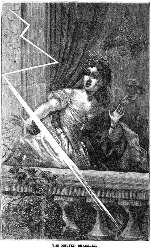An illustration from an 1869 issue of Harper's magazine. The caption reads: "The melted bracelet."