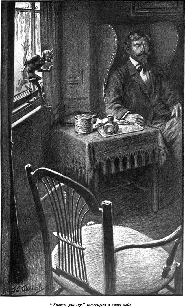 "'Suppose you try,' interrupted a suave voice." An illustration from a 1902 issue of English Illustrated magazine.