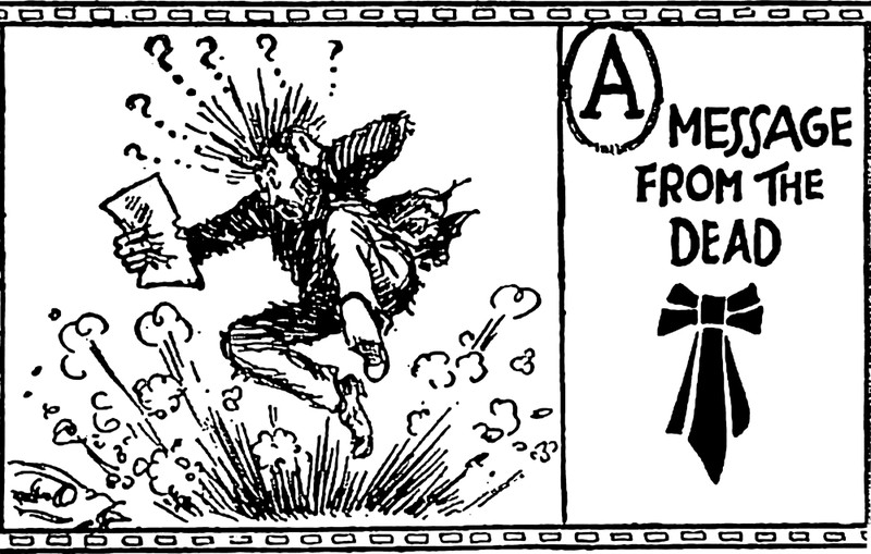 "A message from the dead." A detail of a comic strip from Life, 1920.