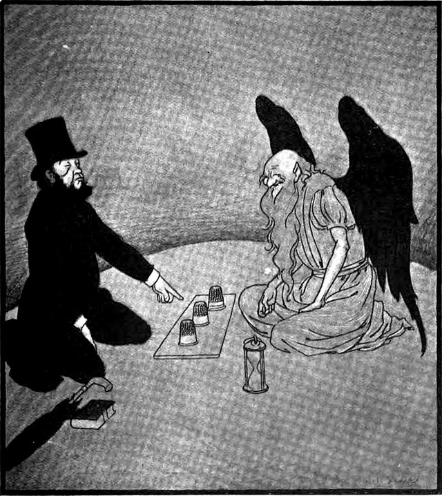 Cups and balls: an illustration from a 1901 issue of The Idler magazine.