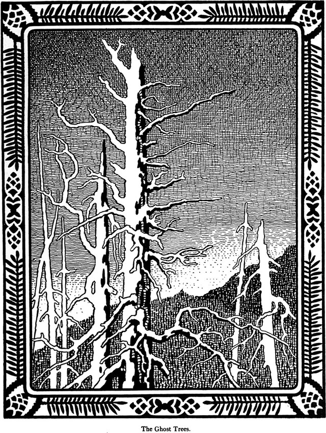 An illustration from a 1922 issue of Scribner's magazine. The caption reads: "The Ghost Trees"