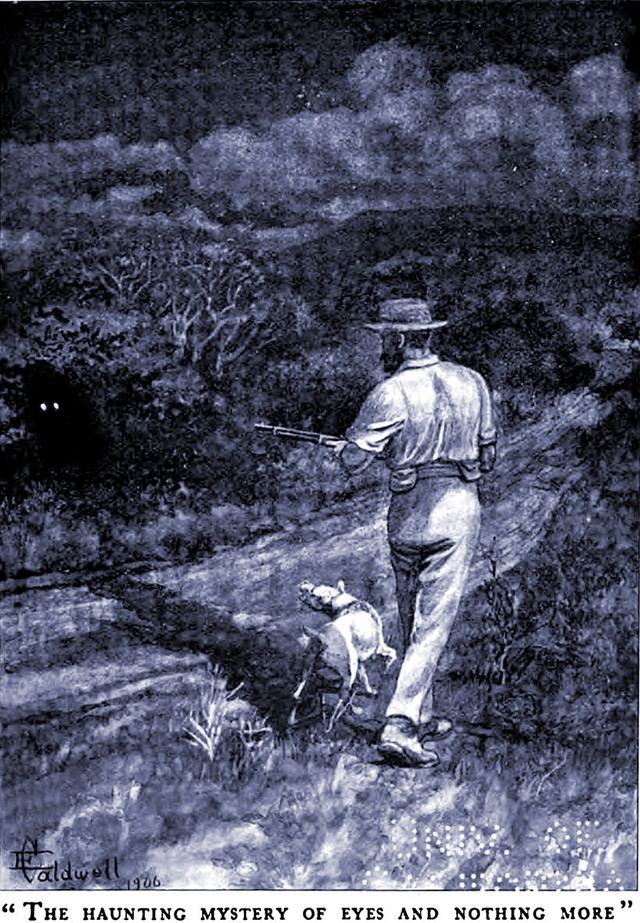 An illustration from Hitting the Dark Trail Starshine Through Thirty Years of Night by Clarence Hawkes (1915). The caption reads: "Writing a new animal biography."