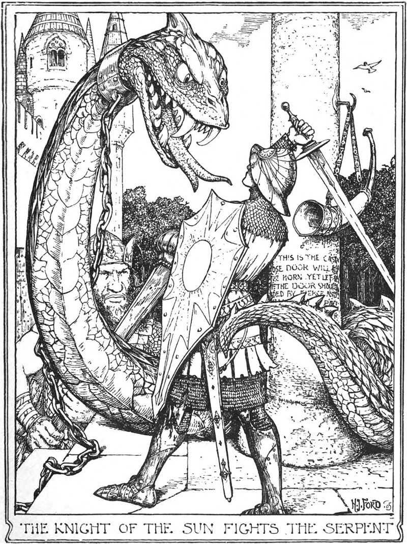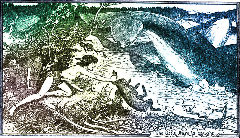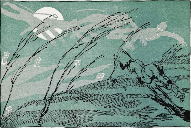 "A shadowy, mist-veiled form, the dumfounded lad did see." From The Joyous Travelers by Maud Lindsay & Emilie Poulsson and illustrated by W. M. Berger, 1919.