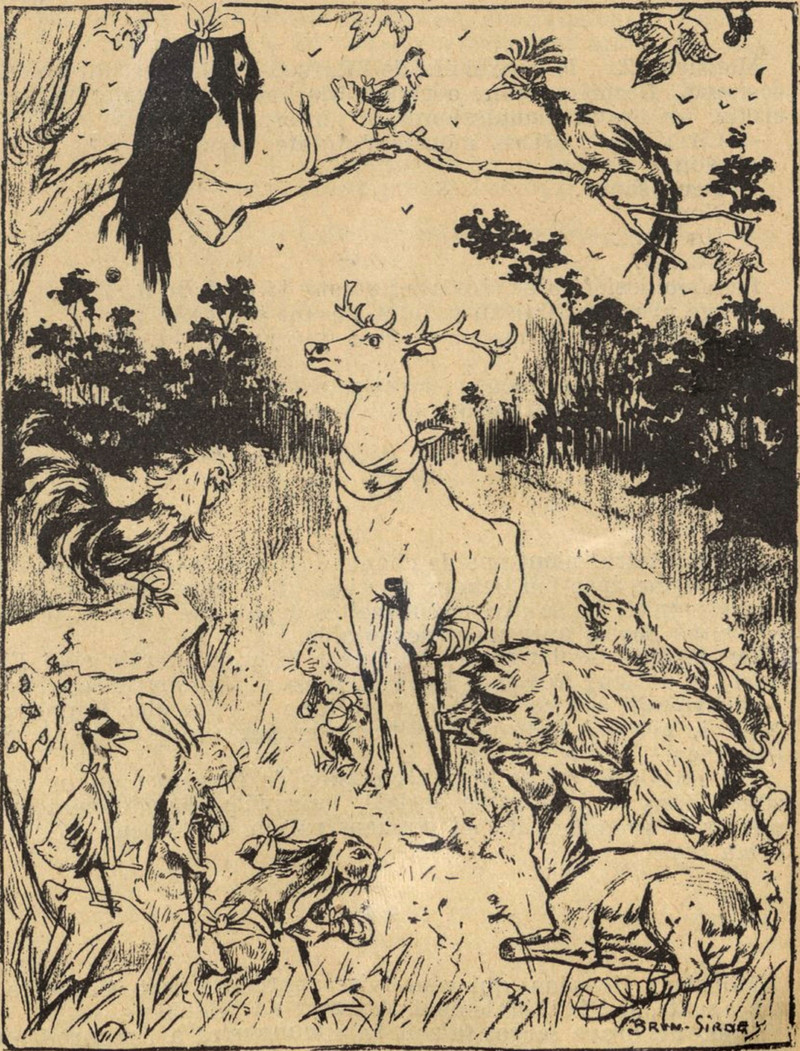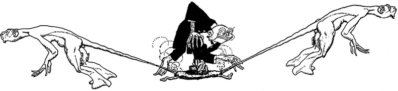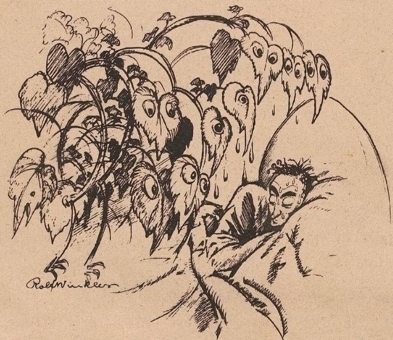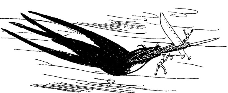 When frogs are attacked by quill-wielding elves on tiny winged horses. From Satirikon, 1909.