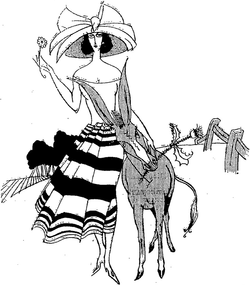 Speared by the imps of pain until her top droops off. From Le Journal Amusant, 1921.