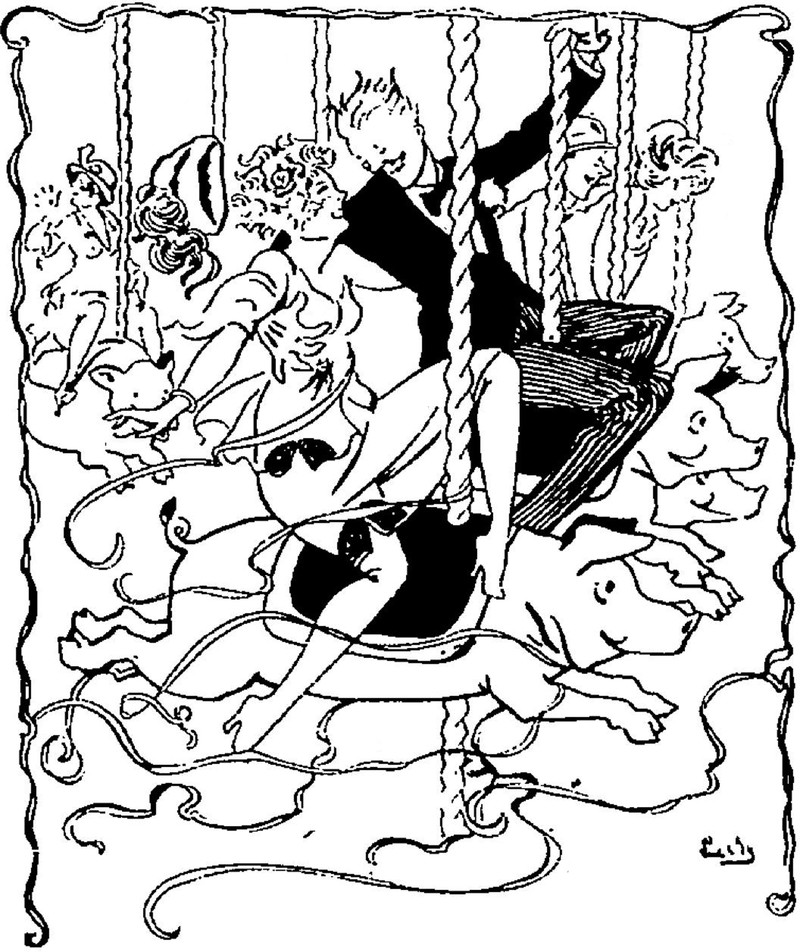 If swingers aren't careful, they can kick Cupid right out of the park. (But that's not the caption. There wasn't one.) From Le Régiment, 1913.