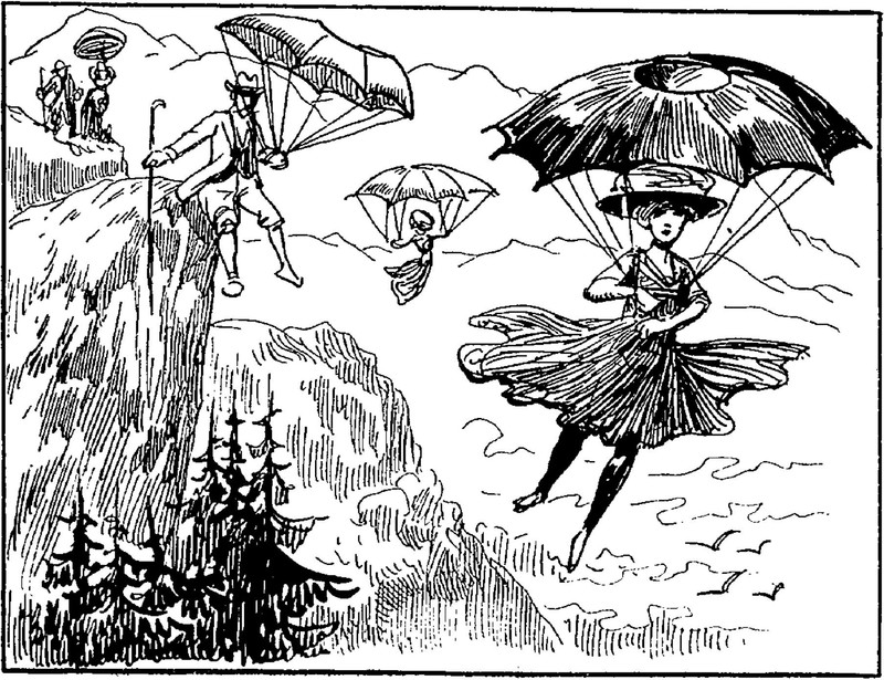Here's a precursor to British explorer Bear Grylls flying over Everest. From Fliegende Blätter, 1924.