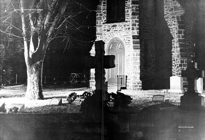 It's as if the dead are speaking: "But there is a bond between us at times, and it is this we seek." From Glassboro's 1971 yearbook.