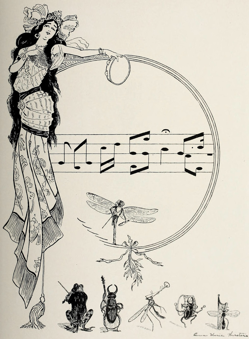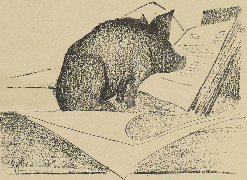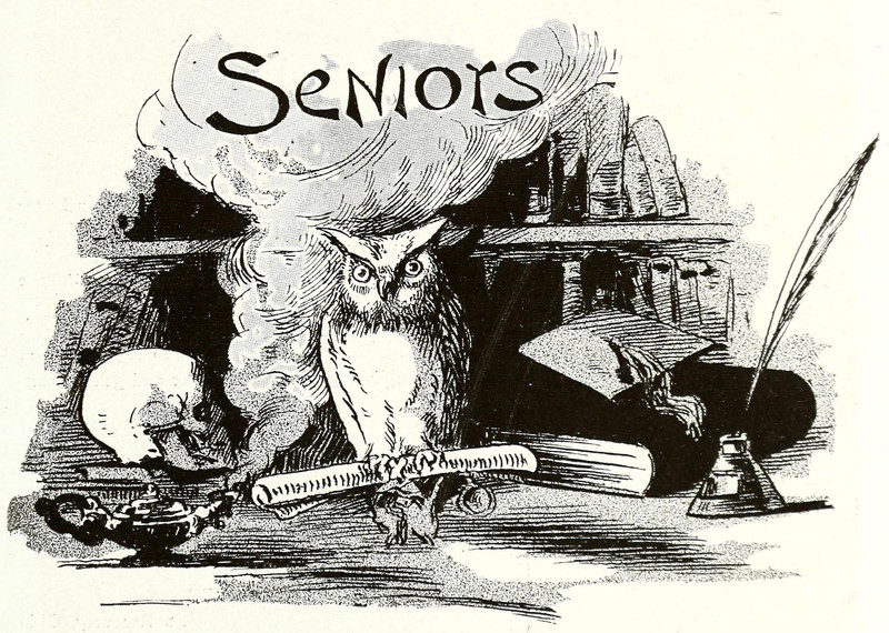 It's common to see birds perching upon wires like notes on sheet music, but this is our first encounter with birds perching upon an edge of sheet music. From Winthrop's 1899 yearbook.