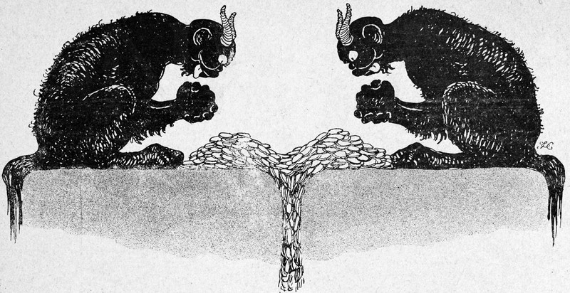 The old woodman talks with the bear. From A Book of Fairy-Tale Bears by Clifton Johnson and illustrated by Frank A. Nankivell, 1913.