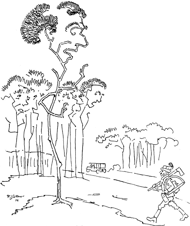 Reblog if this is why we shouldn't chop down trees. From Lustige Blätter, 1914.