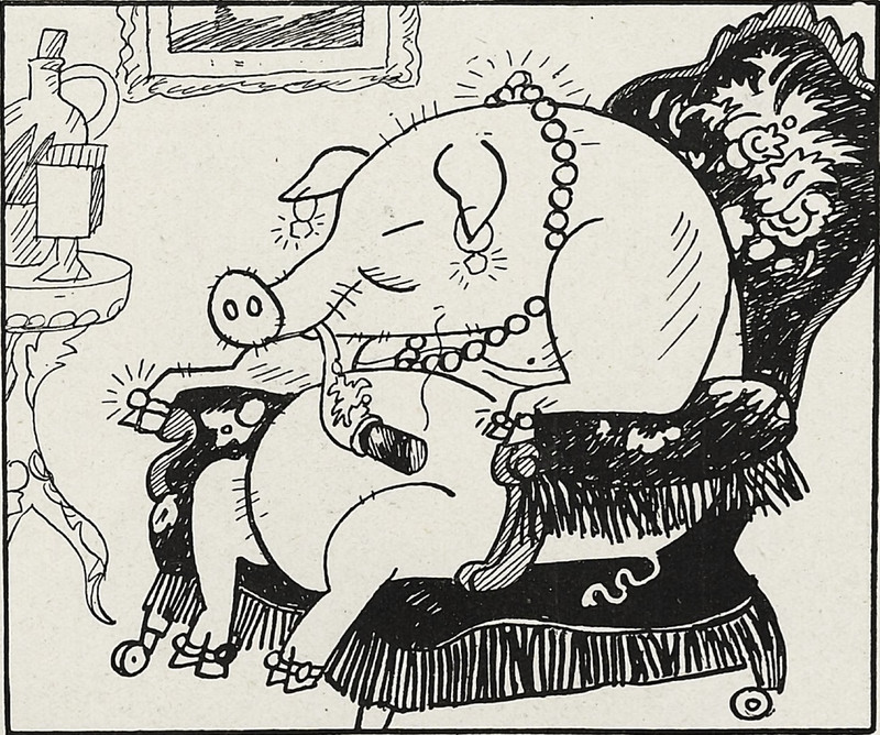 "The Cat Who Married a Mouse" … and the bottle of meat that came between them. From Kitty-Cat Tales by Alice Van Leer Carrick, 1932.
