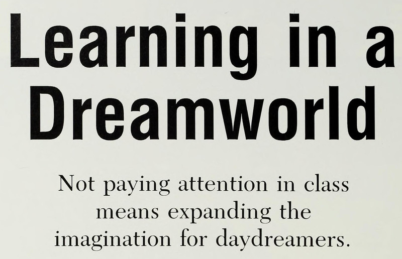 Reblog if you either majored or minored in dreaming. From Santa Clara's 1987 yearbook. The text reads, "Learning in a dreamworld. Not paying attention in class means expanding the imagination for daydreamers."