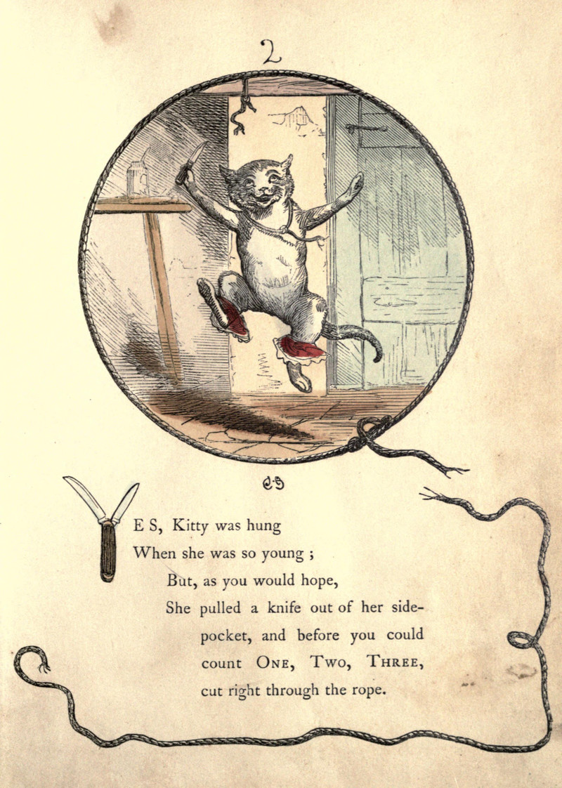 Reblog if you like sliding around in big slippers and/or if your tail sometimes slips out. From Fliegende Blätter, 1847.