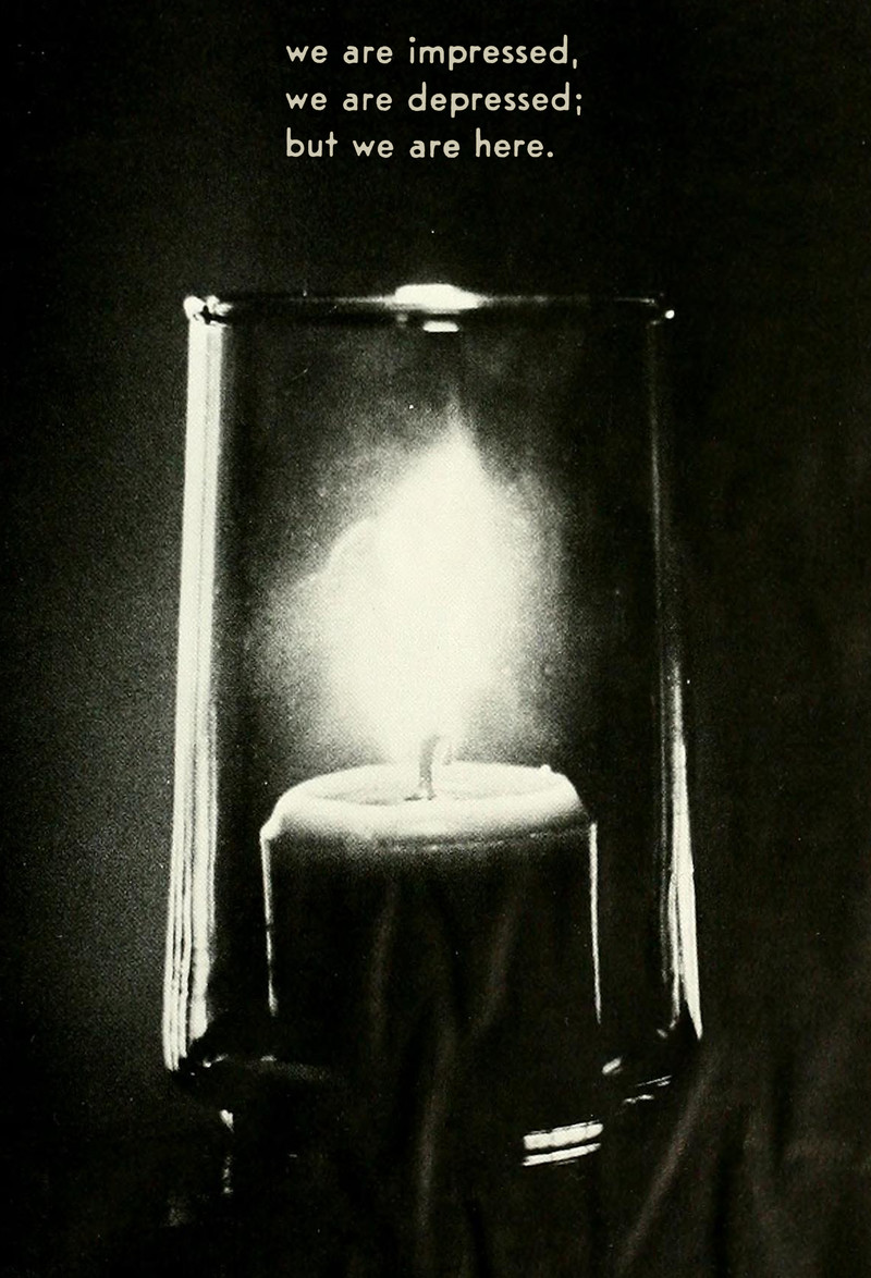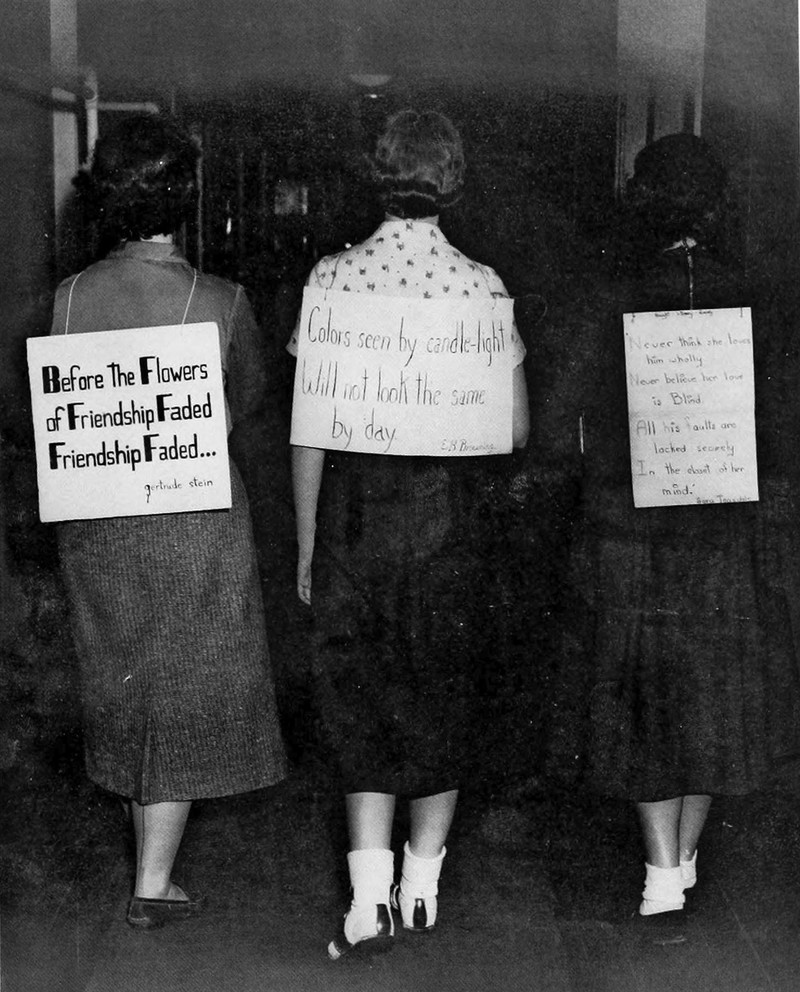 Encountering the shadow self. "In a world intent upon the unrealities we must become aware of the realities." From Catawba's 1969 yearbook.