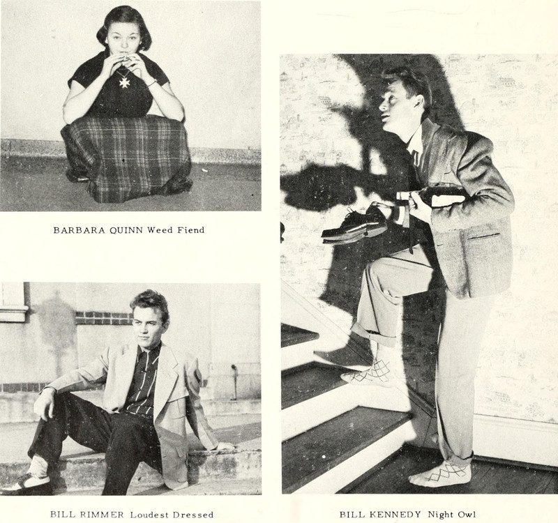 Weed fiend, loudest dressed, and night owl. From Charlotte College's 1951 yearbook.