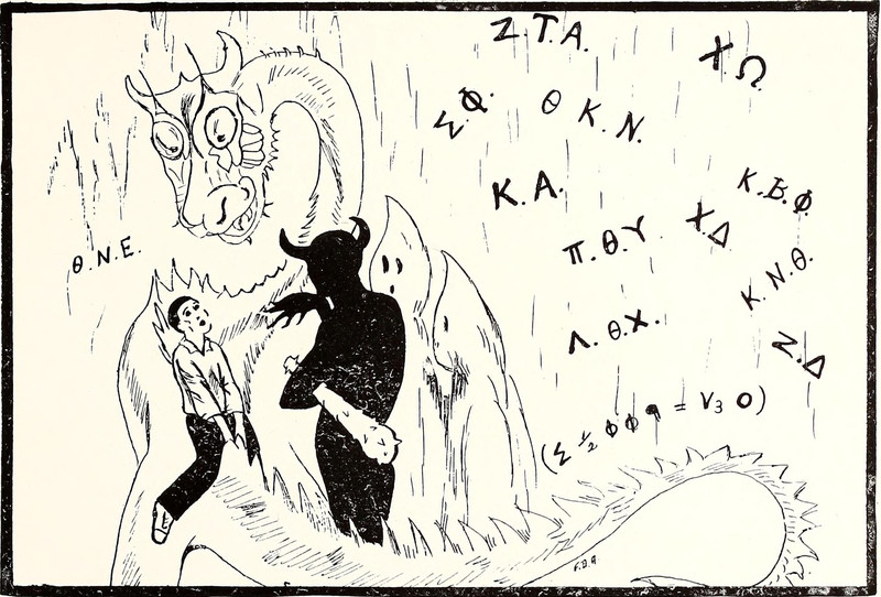 Mathematics is ruled by a lamp genie. From Purdue's 1905 yearbook.