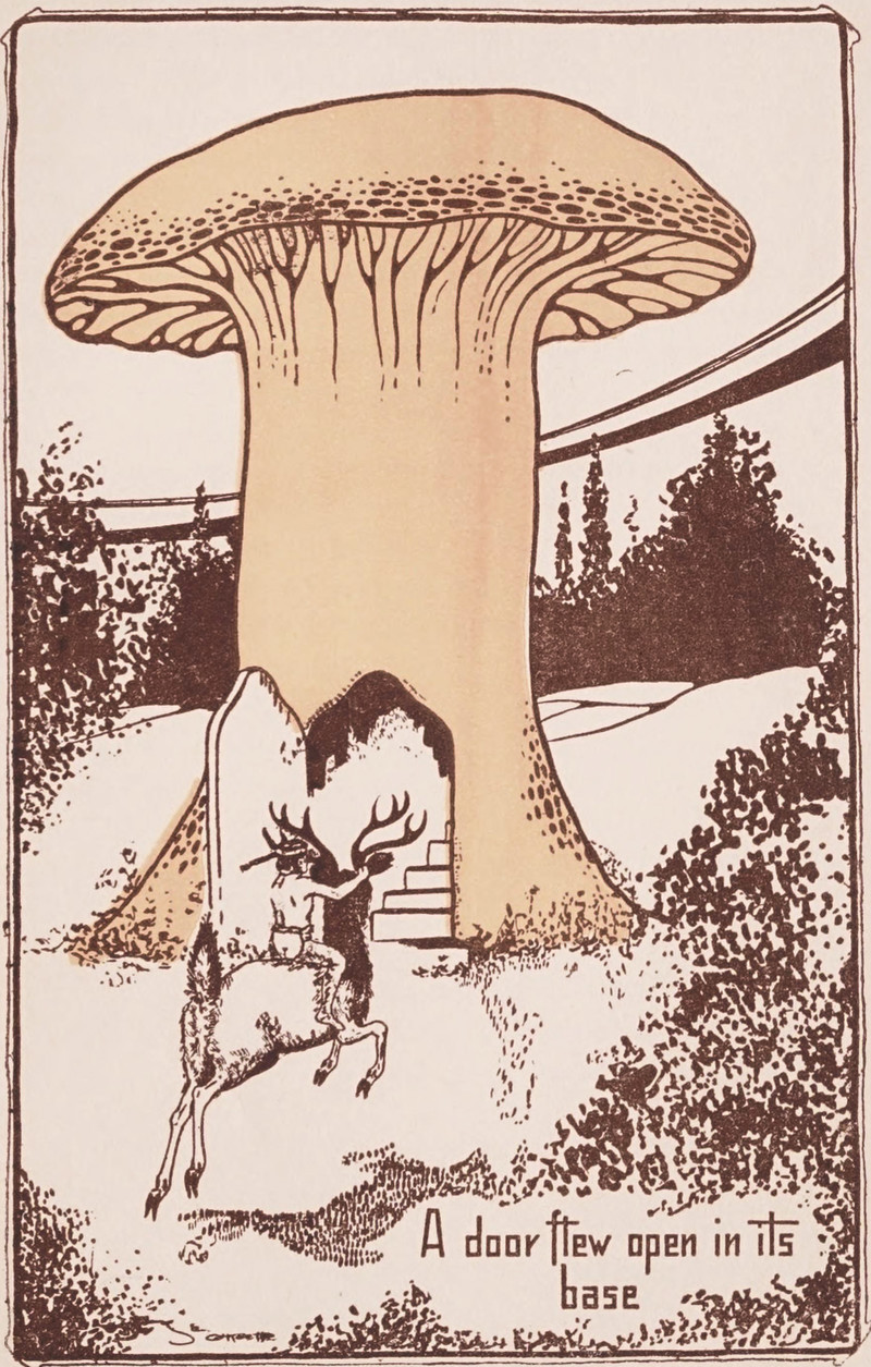 "A door flew open in its base." From American Fairy Tales by Garrett Brown and illustrated by John Edward O'Keeffe, 1911.