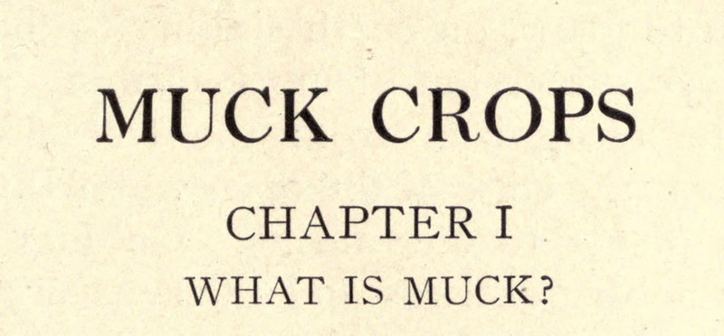 When food tastes like "muck," it may be because it literally is muck that's fresh off a muck farm. From Muck Crops by Albert Edmund Wilkinson, 1916.