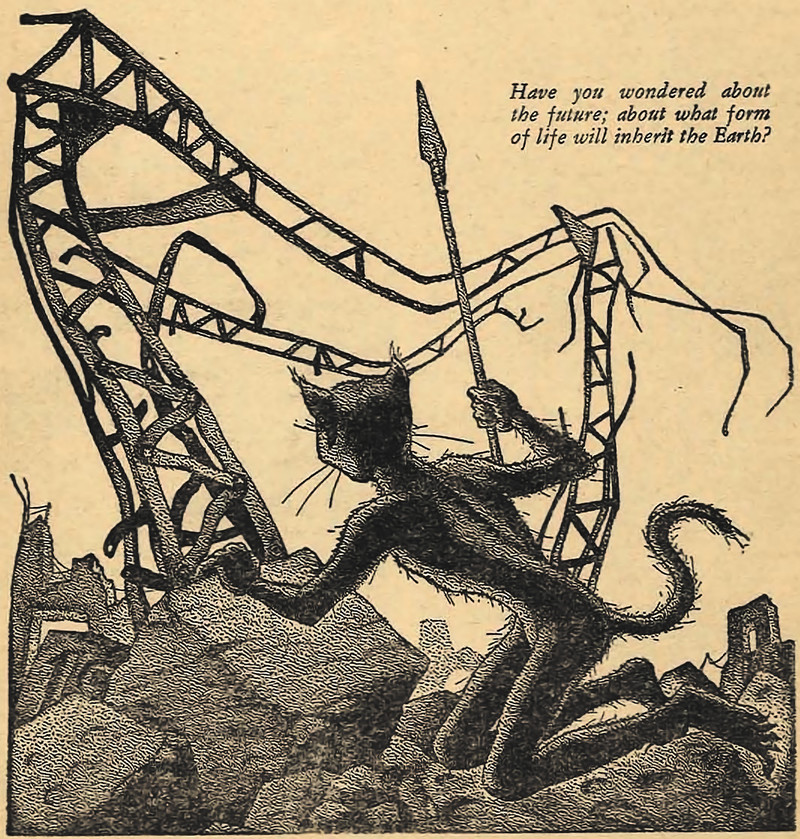 You might have already foreseen this -- it is cats who will inherit the Earth. From Weird Tales, 1946.