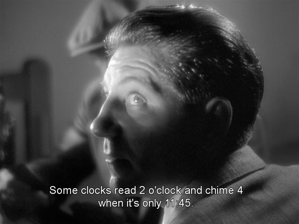 An emerald monocle that shows the viewer the moment of his death. We have one, and it's flattering to wear, but for some reason we keep it in a drawer. From Unknown, 1939.