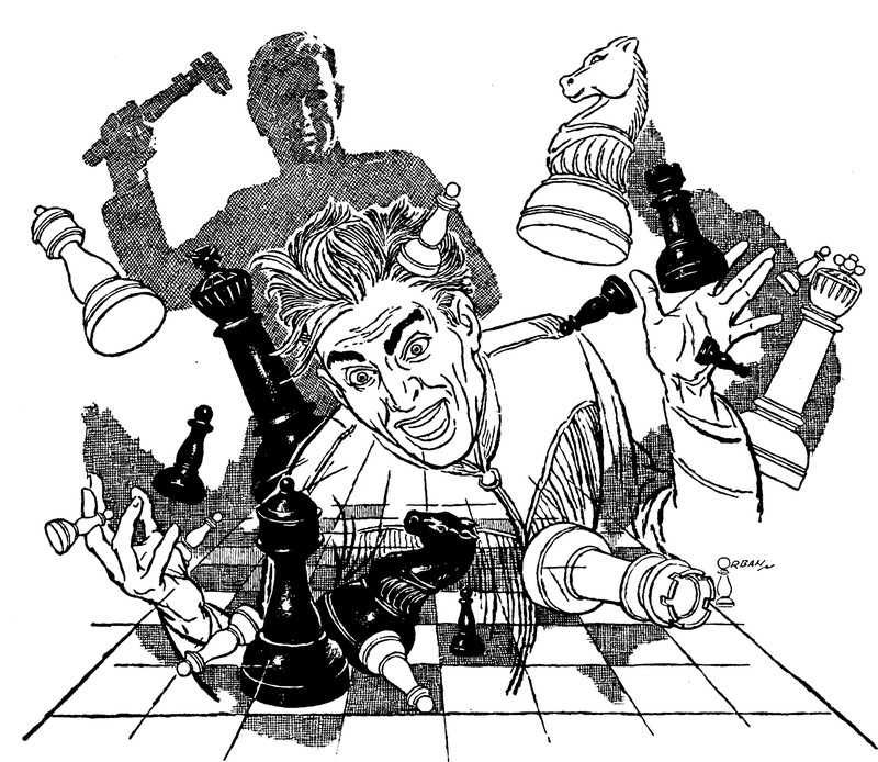 Such an important reminder never to play chess anywhere near a game of Clue, lest a wrench-wielding Prof. Plum ruin everything. From Astounding, 1953.