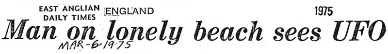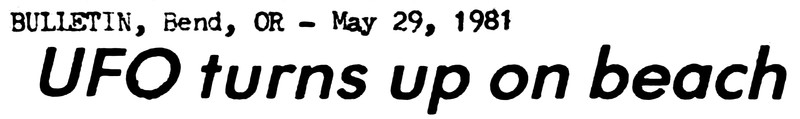 We spotted a sort of follow-up headline, from six years later. Another man on a lonely beach (at 2:30 a.m.) saw a UFO float in with the tide.