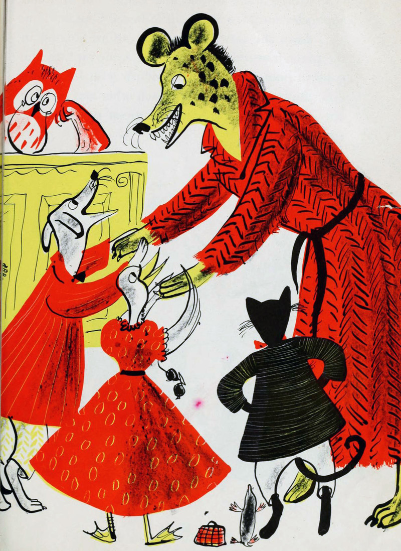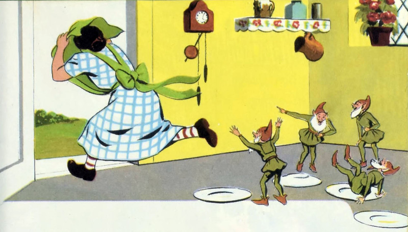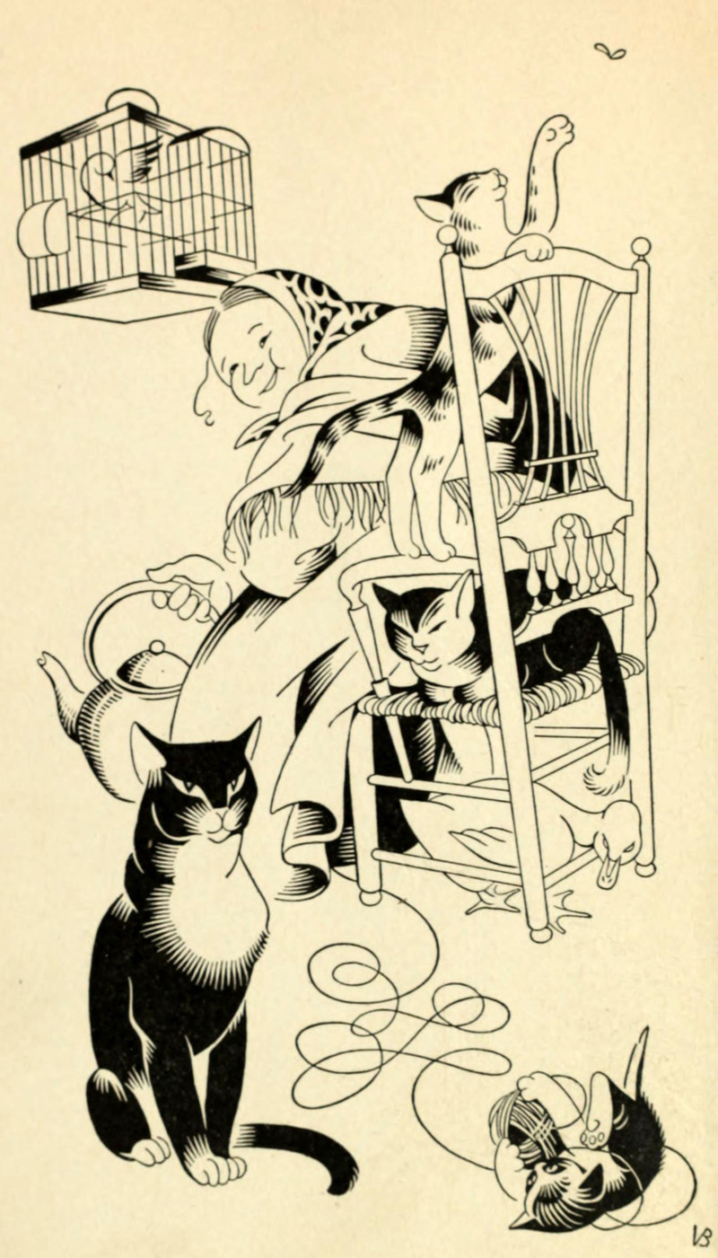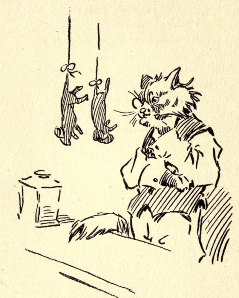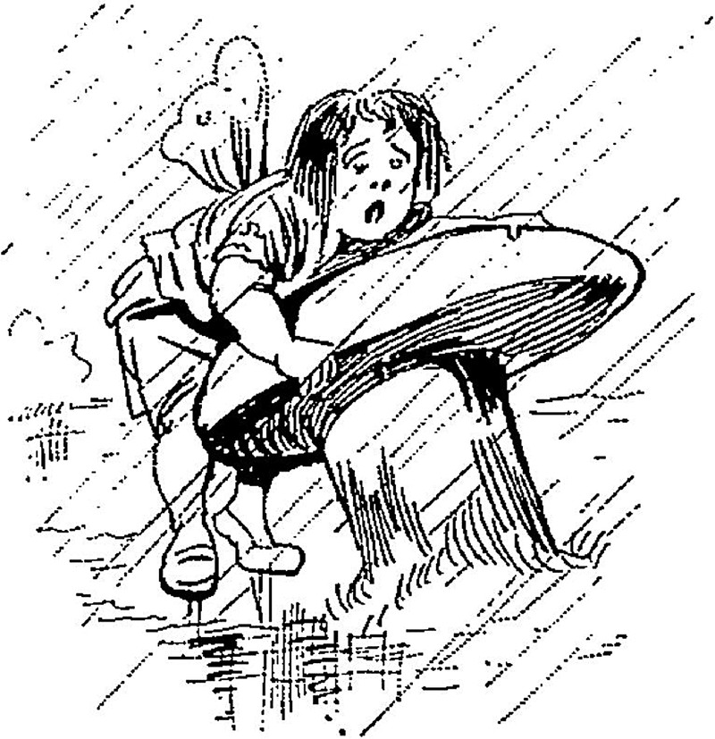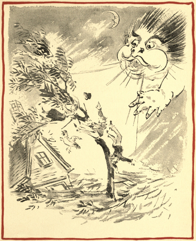 Raining cats and dogs. From Tales from Story-Town by Mina Pearl Ashton and illustrated by Ludwig & Regina, 1930.
