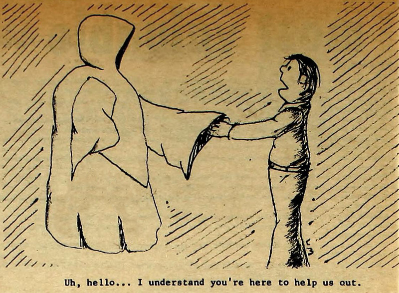 Bad news: "Look out! here comes Blah!" From The Martlet, 1968.
