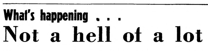 "What's happening ... Not a hell of a lot." (At least that's better than dead mice and scurvy!) From The Martlet, 1968.