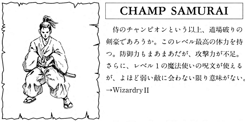 May any champ samurai you encounter fight for you. From Wizardry IV: The Return of Werdna Handbook.