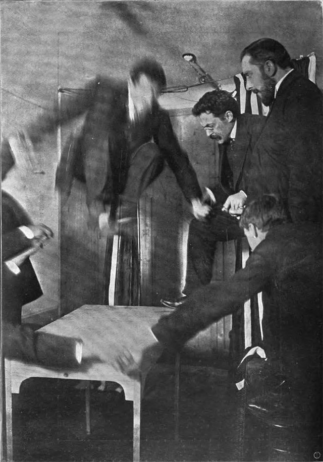 An illustration from The Annals of Psychical Science, vol. 7 (1908). The caption reads: "Giving heed to seducing spirits."