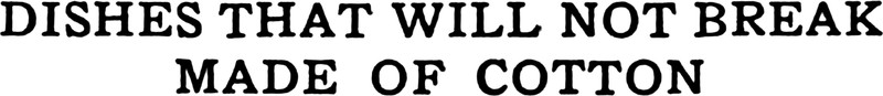 They didn't mention how these dishes will shrink in the wash (but, as a side effect, they're good for portion control). "Dishes that will not break made of cotton." From Popular Mechanics, 1930.
