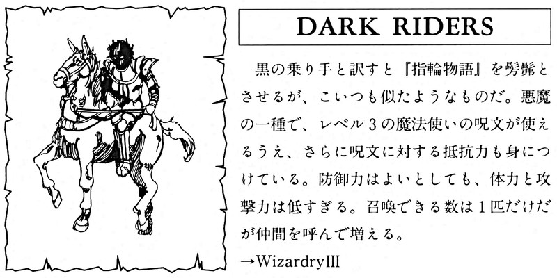 May any dark riders gallop in the other direction. From Wizardry IV: The Return of Werdna Handbook.