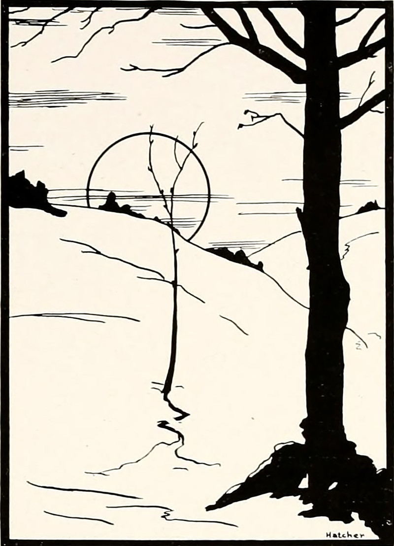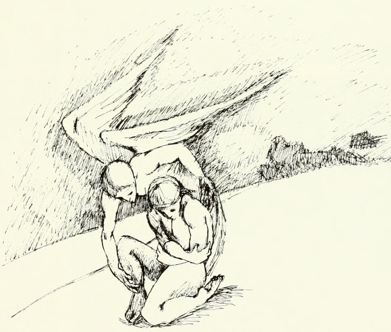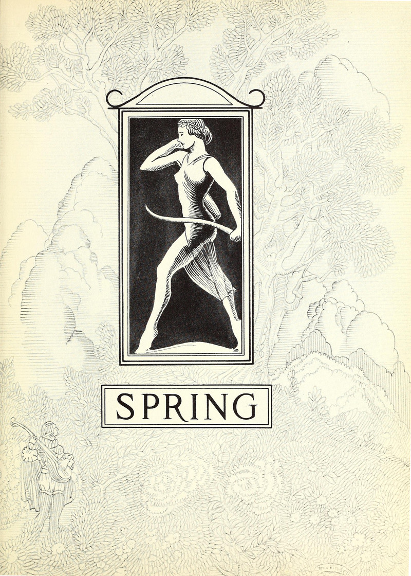 Two depictions of an angelic colonnade, from Ball State's 1938 yearbook.