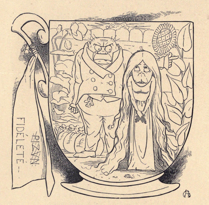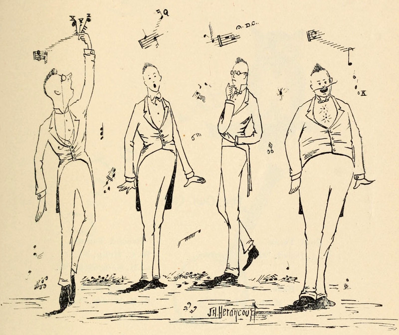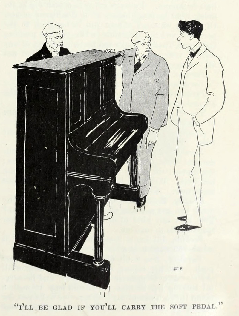 "I'll be really glad if you'll carry the soft pedal." From Harper's, 1894.