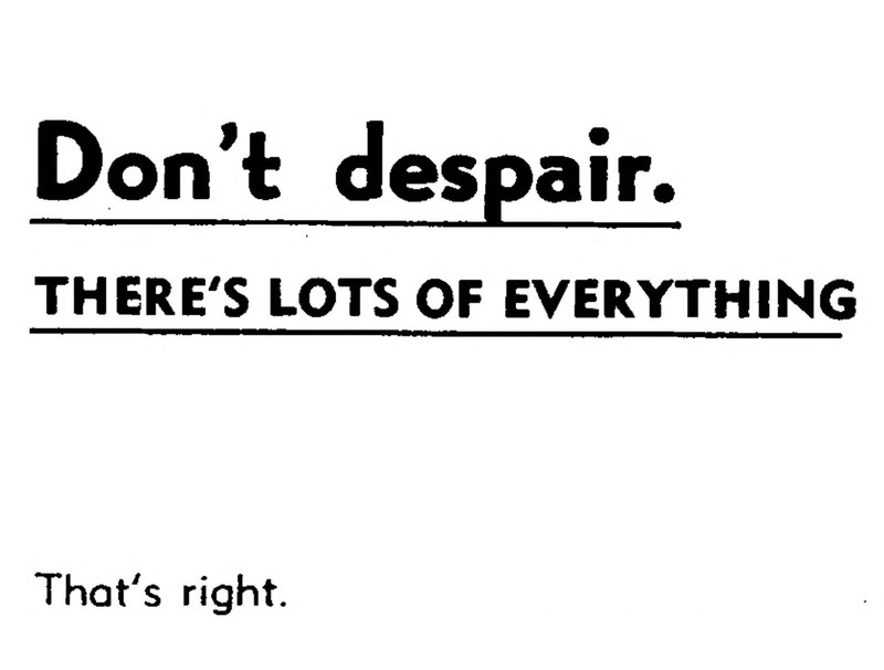"Don't despair. There's lots of everything. That's right." From The Martlet, 1964.