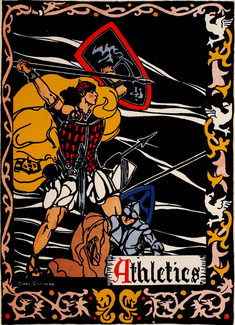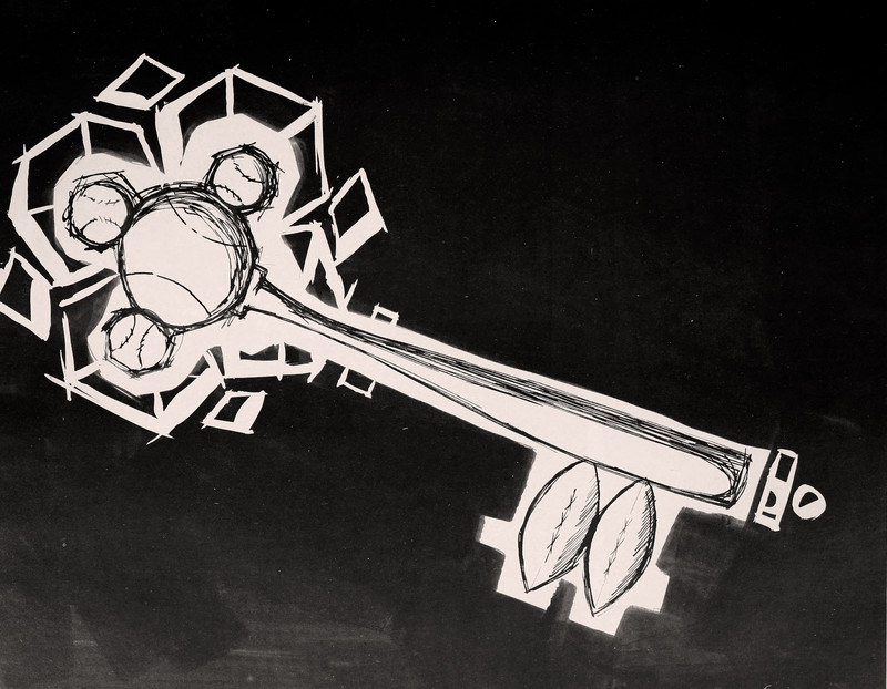 Sports equipment forming a key. From Otterbein College's 1961 yearbook.