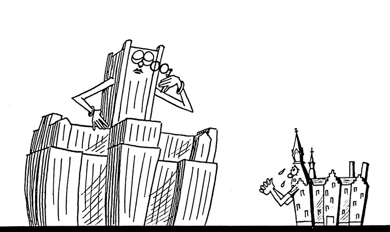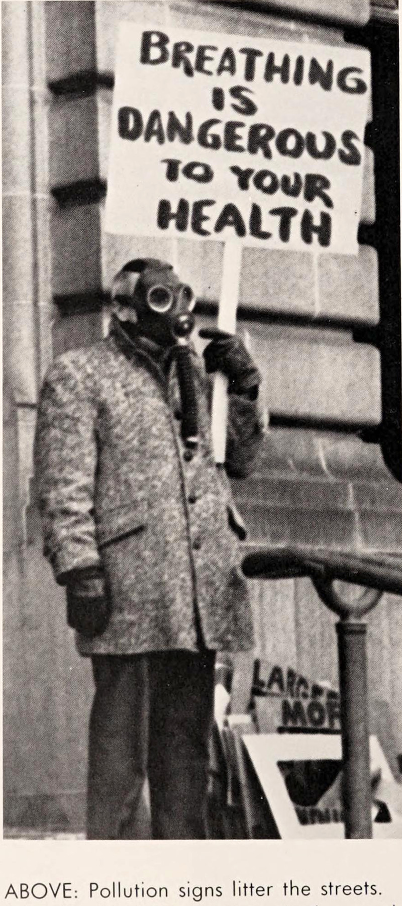 The colossus of NYC says, "Give me your votes, your money, your health, and your soul, but keep your cars, your air pollution, your complaints, and your dreams." From Saint Francis College's 1967 yearbook.